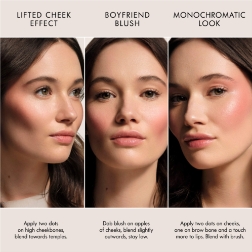 What it is:A lightweight liquid blush that instantly melts into skin and delivers a flush of color that lasts up to 12 hours in both natural and radiant shades.