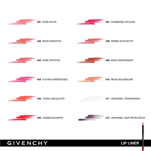 This new range of ten Lip Liner colors is specially designed to suit all shades of Le Rouge and Rouge Interdit lipsticks. Every lipstick finds its perfect match. Each one comes with a sharpener.
