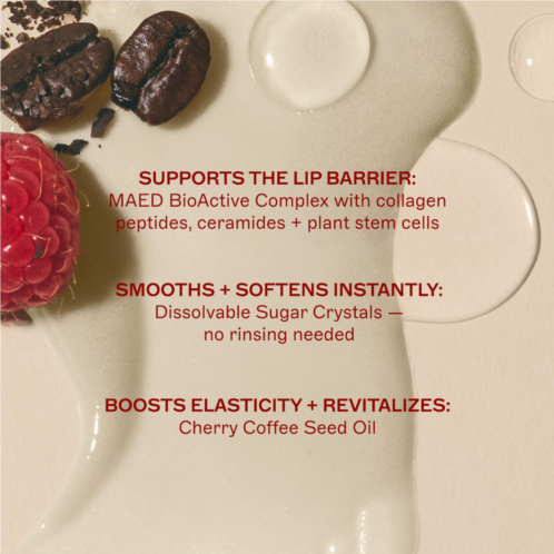 What Else You Need to Know: Fine sugar crystals gently buff away rough, scaly skin, melting into lips to form a cushiony balm. MAED’s BioActive Complex blends bioidentical collagen peptides, ceramides, and plant stem cells to replenish moisture and support the lip barrier. Cherry coffee seed oil restores elasticity.
