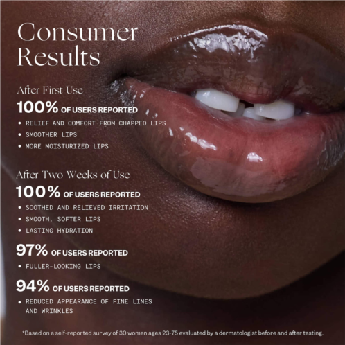 - After 2 weeks, 100% reported soothed and relieved irritation, lasting hydration, and smooth, softer lips