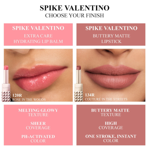 What it is: A melting lip balm with pH-activated color and up to 24 hours of comforting hydration, dressed up in a rose-gold Valentino Rockstud case.