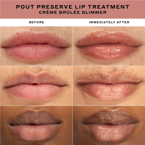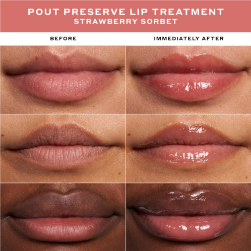 - 2 x 0.4 oz/ 12 mL Pout Preserve Hydrating Peptide Lip Treatment in Strawberry Sorbet, Creme Brulee Glimmer