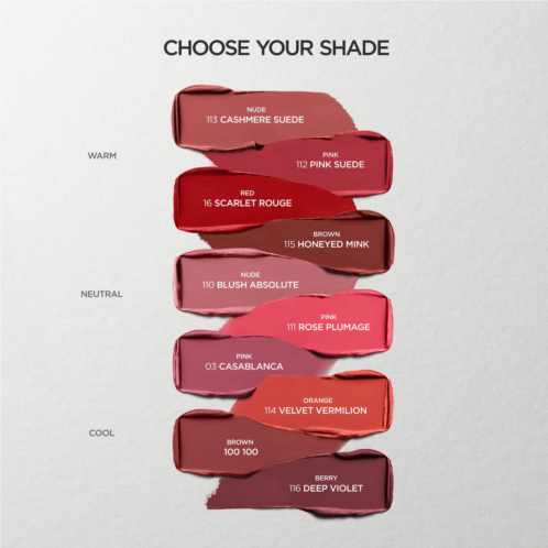 What it is: An effortless matte lipstick with a quiet statement of power, with a weightless, hydrating formula, dressing lips in velvet-soft comfort.