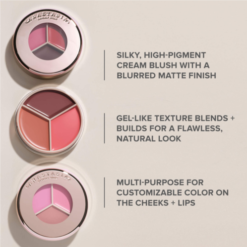What it is: A high-pigment creamblushtrio featuring three vibrant shades enriched with skin-nourishing ingredients that blend weightlessly to a natural matte flush.