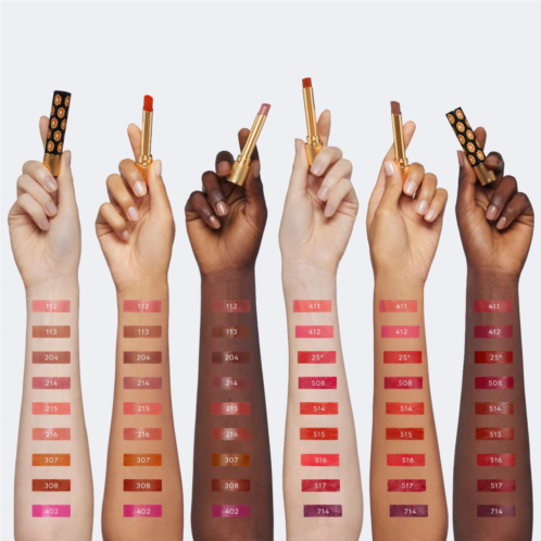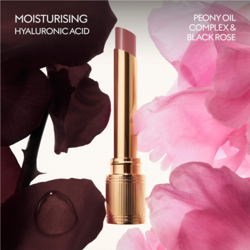 What Else You Need to Know: This lipstick pairs balm-like care with pigment-rich color. Infused with black rose oil, peony oil, jojoba seed oil, and shea butter, the creamy formula delivers 24-hour hydration and luminous shine. Lips immediately appear fuller and smoother. Housed in a gold tube with a black and gold brooch-printed cap.