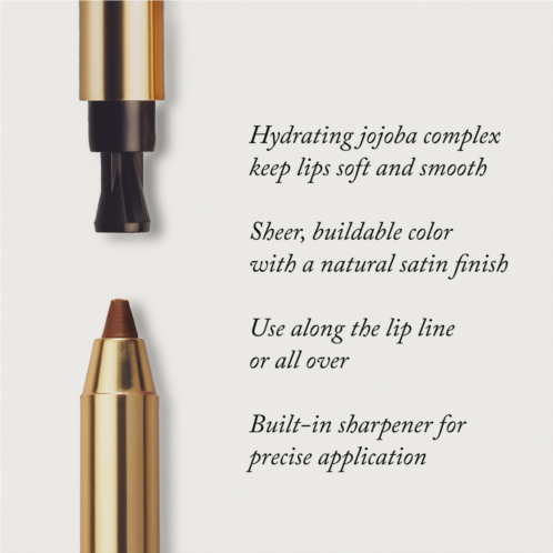 What Else You Need to Know: Versatile and easy to apply, this sheer, satin-finish pencil subtly enhances lips by creating soft definition or comfortable, all-over color. The soft-gel formula glides on smoothly without tugging or crumbling while a hydrating jojoba complex helps keep lips feeling moisturized and smooth. It includes a built-in sharpener.