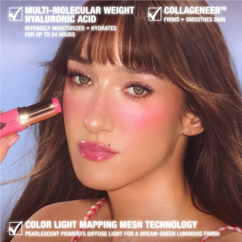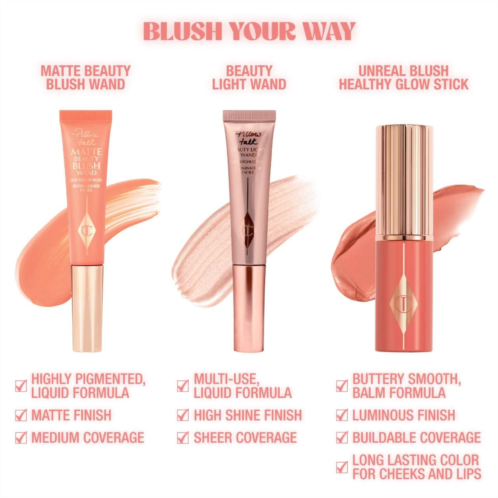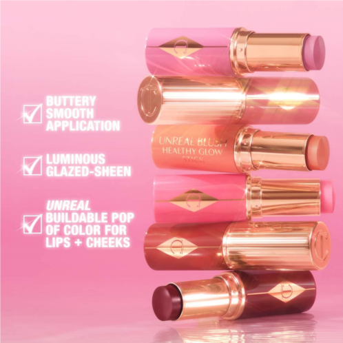 What Else You Need to Know: Charlotte Tilbury's Unreal Blush is supercharged with skin-loving ingredients that hydrate and visibly plump while delivering long-lasting color for a buttery-smooth application. This easy-to-use formula features microfine pearlescent pigments for a glazed sheen and luminous pop of color on cheeks and lips.