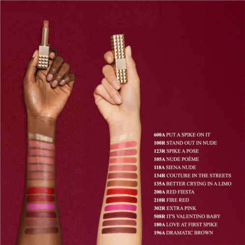 What it is:A buttery matte lipstick that delivers one stroke, vivid pigment and lasts all day. Wear alone or layer with the new limited-edition Spike Lip Shimmer Stick to add a layer of rosewood iridescent shine.