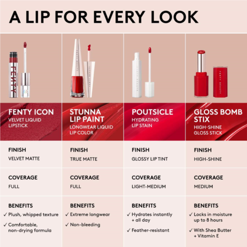 What Else You Need to Know: Stunna Lip Paint delivers high-impact color with low-maintenance, long wear in a range of universal shades handpicked by Rihanna. With one stroke of its lip-defining precision wand, Stunna’s weightless, comfortable, soft-matte formula stays kissably smooth all day.