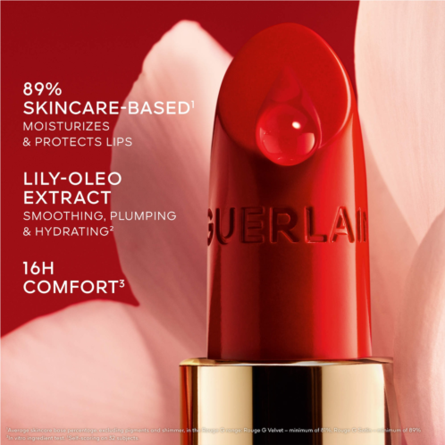 What Else You Need to Know:The gold Rouge G jewel case opens to reveal a secret double mirror. Adorned in chic and timeless designs, Rouge G is endlessly customizable and intended to be refilled, kept, and passed on. The satin and velvet matte formulas of Rouge G Lipstick boasts an ultra-light texture for a barely-there feel and 16-hour comfort. Available in nude, pink, and red lipstick shades, the satin formula leaves lips plumped and shaped, with its silky finish offering a long-lasting satin sheen. The velvet formula smooths and coats lips in unparalleled softness.