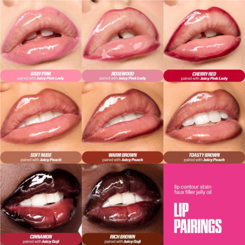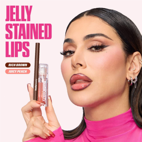 What Else You Need to Know: This flavored non-sticky lip oil glides over lips for a sheer finish with a hint of color & is infused with a blend of nourishing oils that leaves lips soft & hydrated. It comes in 3 fruity shades, each paired with HUDA BEAUTY’s iconic big juicy doe foot that gives an instant jelly shine. To recreate Huda’s fave jelly stained lip look, pair with HUDA BEAUTY’s Lip Contour Stain (sold separately).
