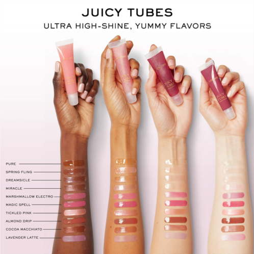 What it is:An original juicy lip gloss with ultra-high shine for a fuller lip effect- the perfect cushiony texture keeps lips hydrated for up to four hours.