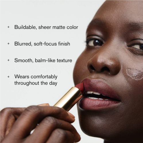 What it is:A lightweight, blurring lipstick that gives a sheer, soft-matte wash of color with a smooth, balm-like texture that feels comfortable all day.
