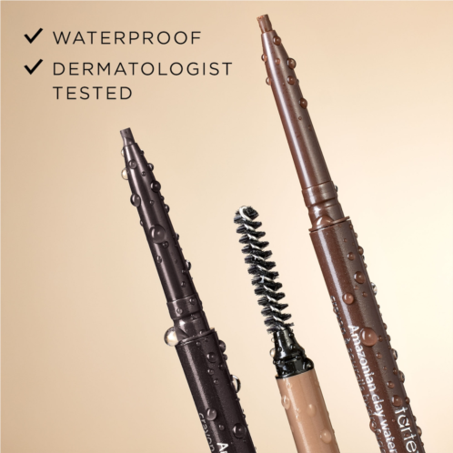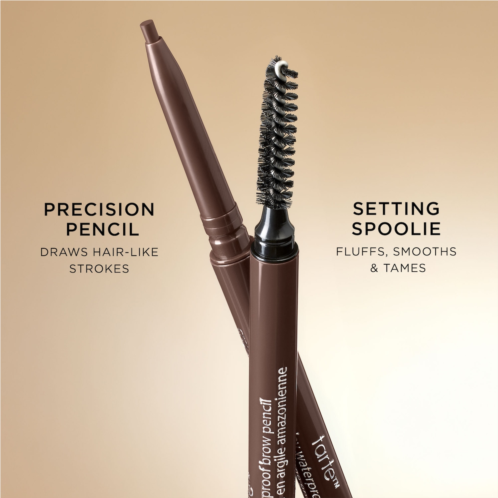 Emphasize your brows with this high-definition, waterproof pencil. With its super-slim design, Amazonian Clay Waterproof Brow Pencil glides on smoothly and lasts all day thanks to Tarte’s patented, plant-wax system, which is infused with natural botanicals, aloe, vitamins A and E, and mineral pigments. This brow pencil’s petite shape allows you to perfectly mimic actual brow hair for a more natural-looking effect. This dual-ended pencil features a precision brush to help tame unruly hairs and keep your arches in place.