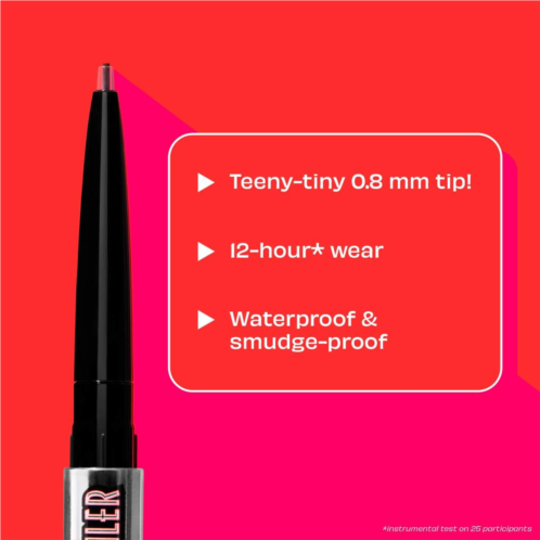 What Else You Need to Know: The teeny-tiny 0.8 mm tip draws on itty-bitty, clean-crisp lines for a polished look that lasts up to 12 hours.* It's firm, precise, and has a creamy-smooth texture that glides onto brows for comfortable, controlled application. Plus, it’s natural-looking, buildable, and blendable.