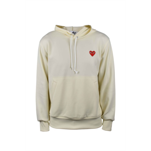 A unique sweatshirt in soft pastel yellow polyester embodies streetwear style. It includes a drawstring hood, a kangaroo pocket for convenience, and long sleeves with ribbed edges for a refined fit. The signature embroidered red heart on the chest adds a playful touch, reflecting the brand's whimsical yet sophisticated aesthetic. - Material - Polyester - Color - Pastel yellow - Hood - Drawstring - Pocket - Kangaroo - Sleeves - Long with ribbed edges - Detail - Embroidered red heart on chest