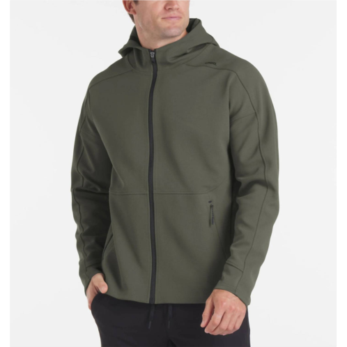 Introducing the UNRL Men's Impact Full Zip Hoodie in a sophisticated sand hue, perfect for elevating your athleisure collection. This long-sleeve hoodie is crafted from 100% polyester with contrast fabric of 64% nylon and 36% spandex, ensuring durability and flexibility. Featuring a zip closure, it boasts a structured performance knit exterior with a soft brushed fleece interior for warmth. Pockets add functionality, while care is as simple as machine wash, making it an ideal choice for cool-weather workouts or casual outings.