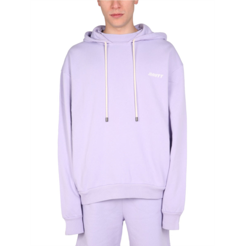 Mouty presents a relaxed fit sweatshirt crafted from 100% soft cotton, perfect for casual outings or athleisure wear. Featuring a functional drawstring hood and stylish ribbed cuffs and hem, this piece showcases a delicate front logo against a backdrop of pastel lavender, embodying simplicity and comfort for the modern lifestyle. - Material - 100% cotton - Gender - Men
