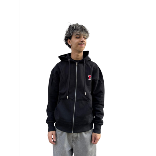 [US] AMI PARIS relaxed fit black hoodie with zip-up closure