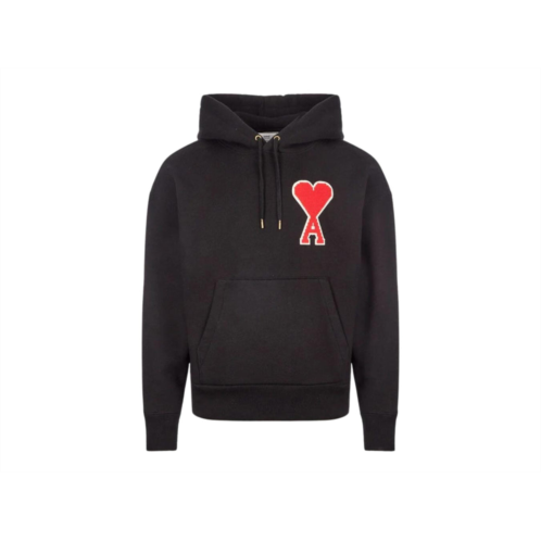 This hoodie from AMI Paris showcases a distinctive oversized red heart logo, a nod to founder Alexandre Mattiussi's signature style. Made from soft cotton jersey with a warm fleece backing, it features a drawstring hood, ribbed cuffs, and a functional kangaroo pocket, blending comfort with modern streetwear aesthetics. - Oversized red heart logo - Soft cotton jersey material - Cozy fleece backing - Drawstring hood - Ribbed cuffs - Kangaroo pocket