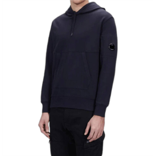 Experience the perfect blend of style and functionality with the C.P. Company Hooded Sweatshirt in Total Eclipse. This solid cotton piece features long sleeves and a drawcord-adjustable hood with tech logo accents. Designed with convenience in mind, it includes a front kangaroo pocket and a secure sleeve pocket with the distinctive goggle lens detail. The pull-on style ensures effortless wear while ribbed edges provide a snug fit, ideal for Thanksgiving or any holiday party this fall season.