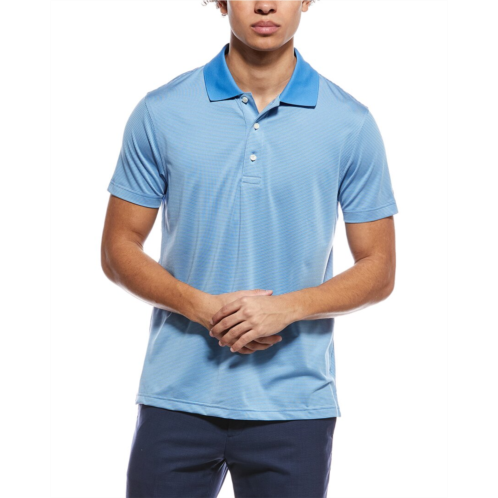 - Performance Knit Polo Shirt In Blue Micro Stripe With High-Low Hem