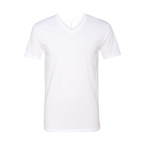 4.3 oz./yd, 60/40 combed ringspun cotton/polyester, 32 singles. Fabric laundered . Set-in CVC 1x1 baby rib collar. Side seams. Tear away label.