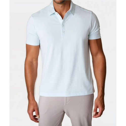 Introducing the Coolest Polo Tech Shirt by Buki, crafted in a sleek light blue shade perfect for any occasion. This short sleeve polo features a four-button placket with a self-collar and laser-cut ventilation holes for enhanced breathability. Made from a superior blend of 64% Supima Cotton and 36% Micro Polyester, this shirt boasts technical benefits such as wrinkle-resistance, dynamic stretch, and moisture-wicking capabilities to keep you comfortable all day. Machine washable for easy care, this sustainably designed piece supports your active lifestyle effortlessly.
