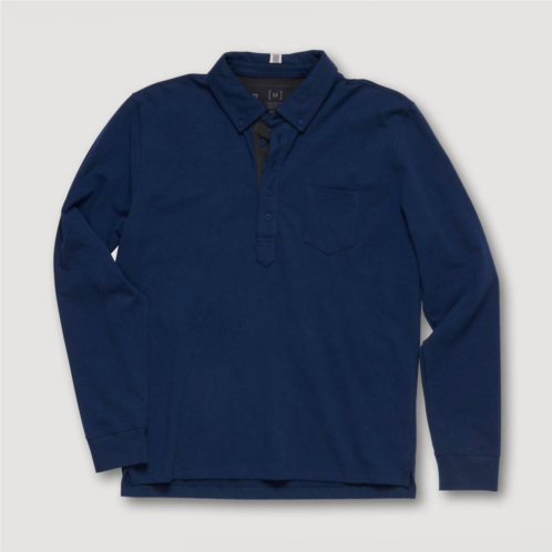 Upgrade your wardrobe with the Men's Giken Long Sleeve Polo by Articl3, designed for the modern man in a classic navy hue. This stylish polo features long sleeves and a versatile collar neckline, perfect for both casual and workwear settings. Composition - 98% Peruvian Blended Cotton, 2% Lycra, ensuring a comfortable and flexible fit. Designed with a convenient button closure and handy pocket, it pairs effortlessly under a sport coat or styled on its own.