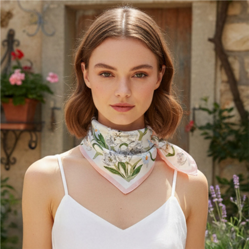 [US] TRUEDAMES elegant floral pattern printed square silky satin bandana scarf