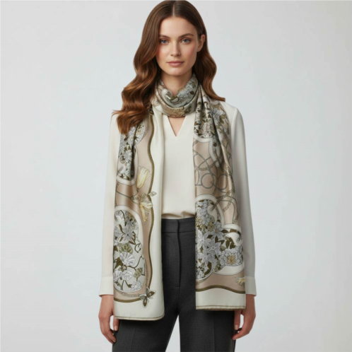 [US] TRUEDAMES ornate floral medallion printed oblong silky satin scarf shawl
