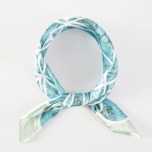 [US] TRUEDAMES intricate overlay pattern printed square silky satin bandana scarf