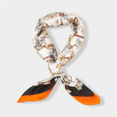 [US] TRUEDAMES elegant floral branch butterfly pattern printed square silky satin bandana scarf