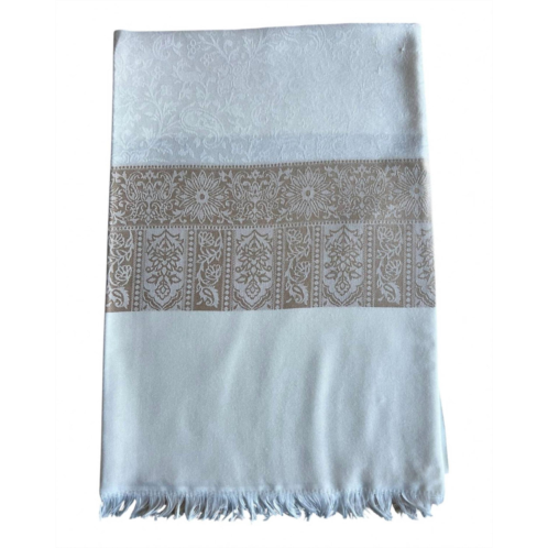 Both classic and versatile with the endless ways you can wear it.Timeless accessory that defines elegance with its intricate floral patterns and ornate borders. Crafted from premium jacquard and luxuriantly soft, breathable modal fabric. Lightweight yet cozy, suitable for all seasons. Expertly woven design features soft fringes for a refined finish, enhancing its regal charm. Heirloom-worthy piece designed to be cherished for years to come.
