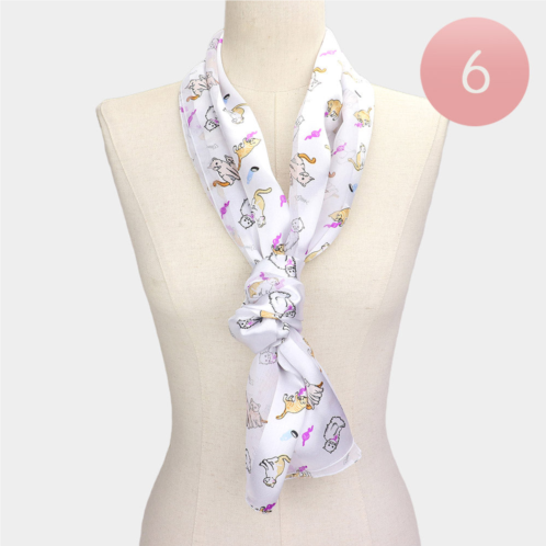 [US] TRUEDAMES 6pcs - silk feel satin striped cat print scarf