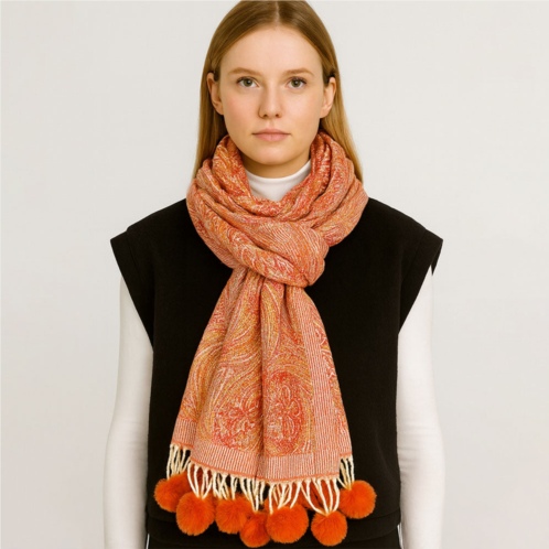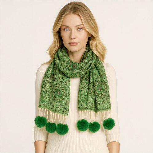 [US] TRUEDAMES elegant patterned pom tassel accent winter scarf