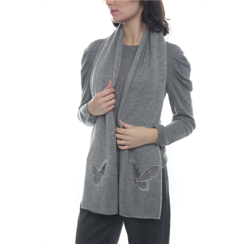 100% Cashmere scarf with butterfly embroidery