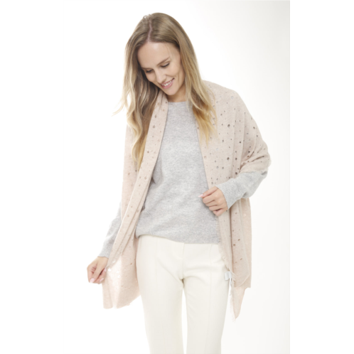Cashmere scarf with open weave and delicate fringe around the edges. 100% Cashmere