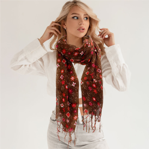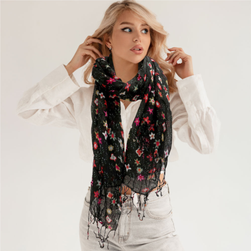 [US] TRUEDAMES floral print fringe oblong scarf