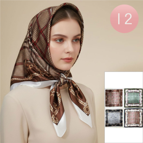 [US] TRUEDAMES 12pcs - silky feel checkered pattern printed square scarves