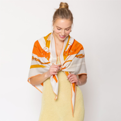 [US] TRUEDAMES abstract pattern printed triangle shape cashmere silk blend scarf