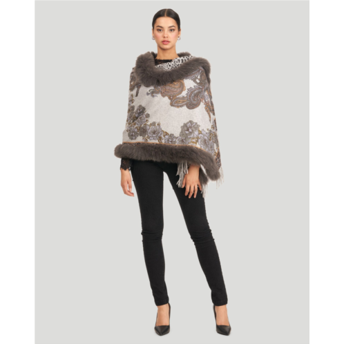 [US] Gorski double faced cashmere stole with fox trim