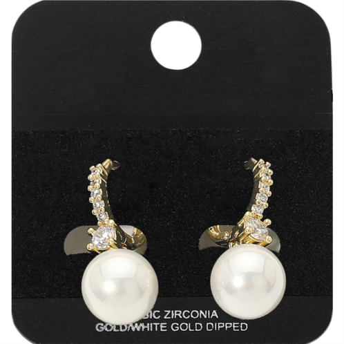 [US] FASHNZFAB gold dipped pearl drop cz pave huggie earrings gold