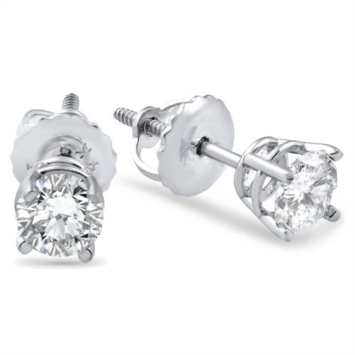 This classic pair of round studs features 2 matching round brilliant cut natural diamonds. All diamonds are prong set in 14k white gold screw on screw off findings. 1/2ct total diamond weight.
