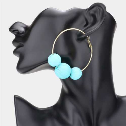 [US] FASHNZFAB raffia wrapped triple ball hoop earrings - turquoise