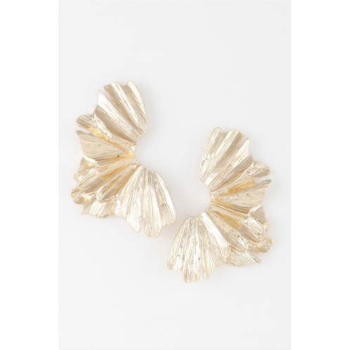 Sculptural Flower Gold Drop Earrings make a graceful and artistic statement. Measuring 1.4' x 2.2', these earrings feature an abstract floral shape with fluid, petal-like curves. The gold-tone finish adds warmth and elegance, while the sculptural design creates a striking silhouette, perfect for weddings, special occasions, or elevating everyday looks.
