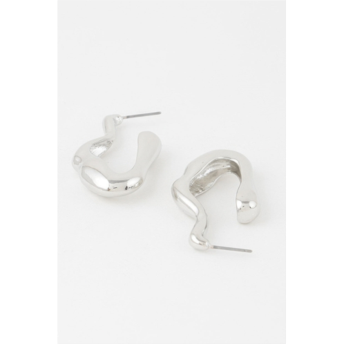 Molten Hoop Earrings feature a fluid, sculptural design with an organic, melted-metal look. Measuring approximately 0.8' x 1.5', these asymmetrical hoops combine glossy, reflective surfaces with lightweight construction for comfortable wear. Perfect for adding a fashion-forward, artful touch to everyday or minimalist outfits, they elevate your accessory game with modern sophistication.