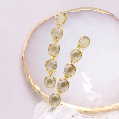 [US] FASHNZFAB round stone link dangle evening earrings - black diamond