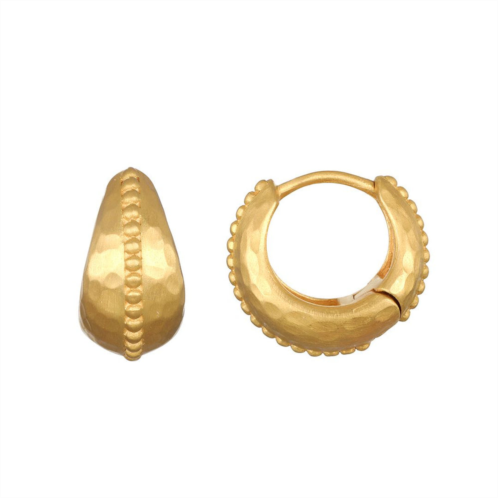 Little joys sweeten our days, awakening hope and opening our hearts to happiness. Huggie hoop earrings in 18kt gold plate are accented with a singular line of gold beads, creating a timeless, classic earring.