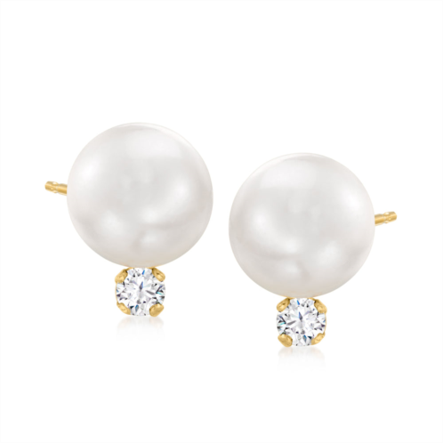 [US] Ross-Simons 7-7.5mm cultured akoya pearl and . diamond accent earrings in 14kt yellow gold